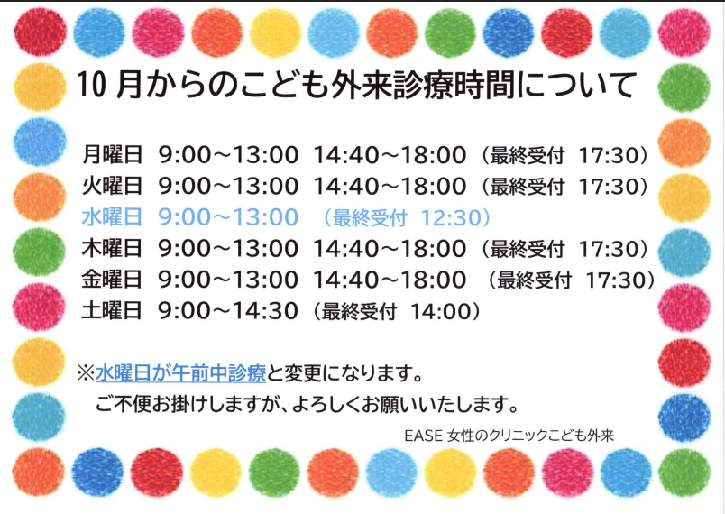 ・野﨑医師 発達外来 10月6日、10月20日 14:30-16:30(最終受付16:00)