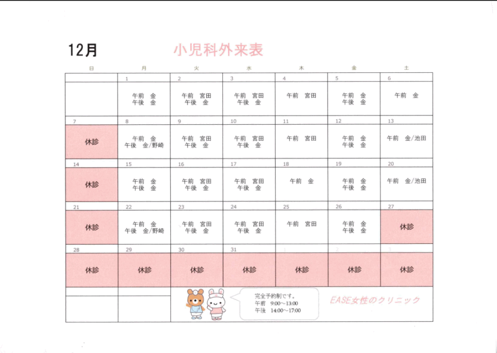 小児科(こども外来)は毎週火曜日を終日休診とさせていただきます。。ご不便をお掛け致しますが、何卒ご了承くださいますようお願い申し上げます。